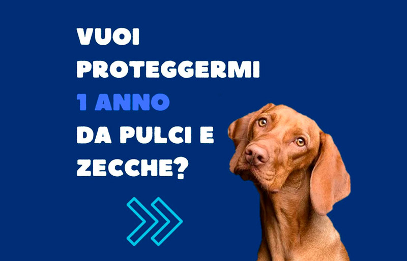 La prima protezione sistemica per cani che dura 12 mesi, garantendo un controllo efficace su pulci, zecche e malattie trasmesse da questi parassiti